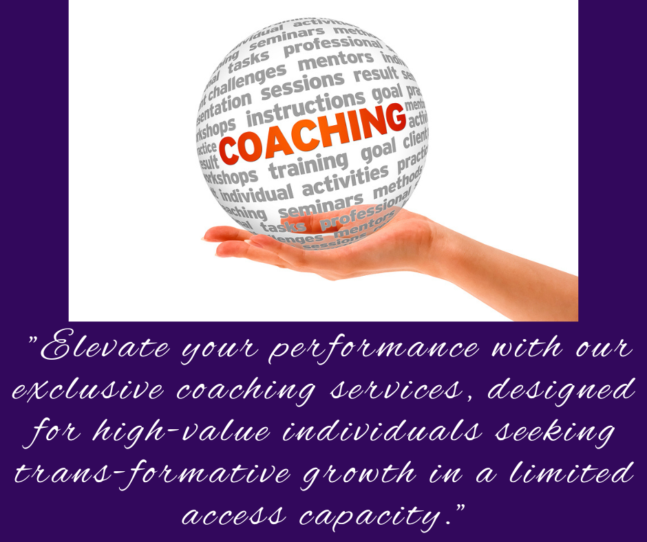I provide Exclusive Coaching for High-Value Individuals aimed at unlocking their highest potential for a purposeful, abundant life. This program is for committed individuals ready for personal growth, transformation, and making a global impact, such as executives, entrepreneurs, and leaders.